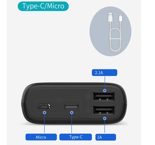 Portable 20000mAh Power Bank with Dual USB Output and Type C Micro USB Input
