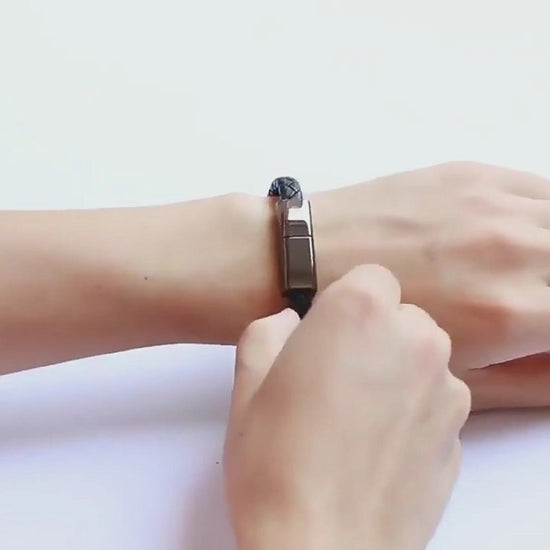 Crafted with premium braided cable design, this leather USB bracelet offers durability and elegance in one compact form. It’s lightweight, flexible, and tough—made to withstand everyday wear and tear while maintaining its sleek minimalist design. The outer shell features a smooth, skin-safe silicone finish that enhances comfort for prolonged wear.